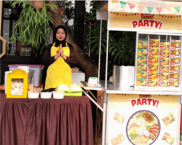 Tergantung paket pesanan. Kami menyediakan booth/meja display sesuai menu yang dipilih, dan ada 1-2 SDM yang menjaga dan/atau live cooking di booth tersebut.